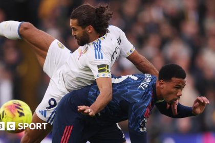 Physical battlepublished at 15:17 GMT 15:17 GMT Leeds 0-0 Arsenal Alex HowellBBC Sport Arsenal reporter at Elland Road It’s already a very physical battle between Dominic Calvert-Lewin and Arsen...