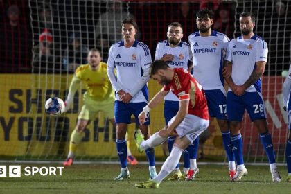 Luke Garbutt scored a sublime free-kick as Salford beat Swindon 3-2 in the FA Cup third round to set up a glamour tie with seven-time winners Manchester City. The home side took an 11th-minute lead wh...