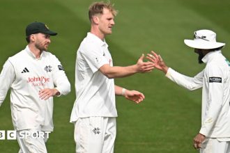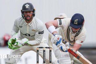 Anderson should have taken two in successive deliveries, with Harry Singh’s drop at second slip ensuring Nathan McSweeney survived his first ball in county cricket – but Ricardo Vasconcelos was castled by an inswinger for 25 before Saif Zaib (four) and James Sales (two) both fell cheaply.