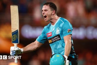 Home / Cricket / All-round Gardner helps Sixers beat Stars – WBBL scorecardCricketAll-round Gardner helps Sixers beat Stars – WBBL scorecard3 December 2025 All-round Gardner helps Sixers beat Stars – WBBL scorecard Share this ArticlePrevious ArticleRugby World Cup 2027 draw: England and Wales paired togetherNext ArticleLate Grealish goal gives Everton victory at Bournemouth. Video, 00:07:02Late Grealish goal gives Everton victory at Bournemouth Related Posts Big Bash League 2025-26 results: Brisbane Heat pull off record ch ... 19 December 2025 Ashes 2025-26: England fans praised for litter picking at Adelaid ... 19 December 2025 Test Match Special Podcast – The Ashes: Head hammers down England ... 19 December 2025 Leave a ReplyYour email address will not be published. Required fields are marked *CommentName Email Website