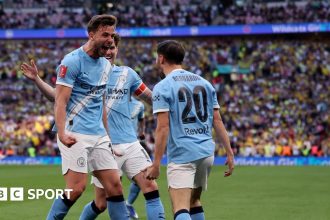 Image source, Getty ImagesThat has to be one of the softest calls I have seen this season as Enzo Fernandez’s header is ruled out for a push.