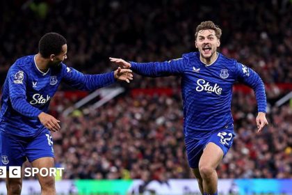 Ten-man Everton held on for a rare and quite amazing Old Trafford victory after Idrissa Gueye was sent off for striking team-mate Michael Keane after just 13 minutes against Manchester United. In quit...