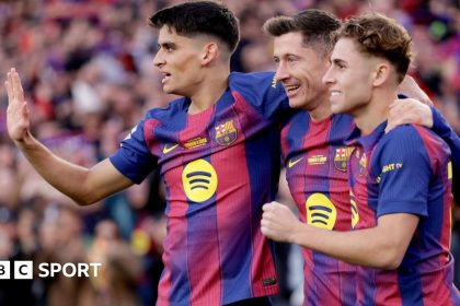 Barcelona moved to the top of La Liga with an emphatic win over 10-man Athletic Club in their first match at the Spotify Camp Nou since May 2023. Robert Lewandowski scored their first goal back in the...